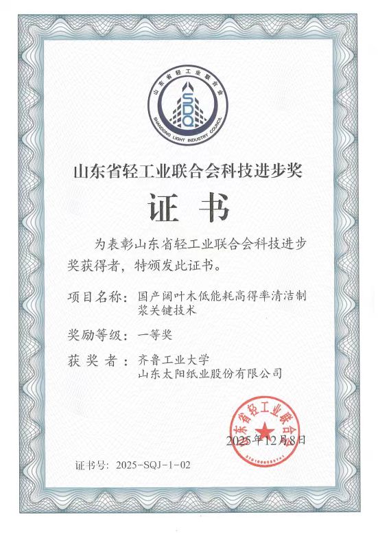 近日,山东省轻工业联合会公布2025年度科学技术奖获奖名单,太阳成集团tyc33455cc成集团tyc33455cc与齐鲁工业大...